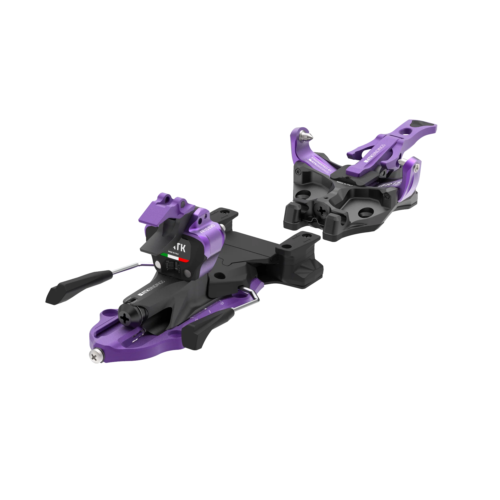 - Cam Release System: il sistema brevettato di ATK che contribuisce a uno step-in morbido e garantisce una perfetta rigidità torsionale.